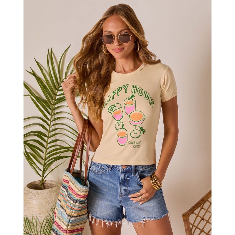 Cheers to golden hour and good vibes, the Happy Hour Short Sleeve Graphic Tee is here to set the tone. Made from soft, breathable jersey fabric, this tee brings an effortless cool to your wardrobe with its cheeky front graphic that says youre always down f