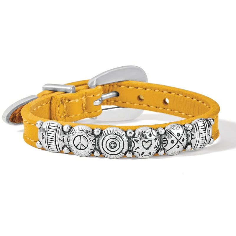 For every woman who wishes for peace, love and beautiful jewelry - this leather-branded bracelet with a row of artful silver conchos sends that message with every flip of your wrist. Perfect for everyday style and casual chic. A quiet standout!
