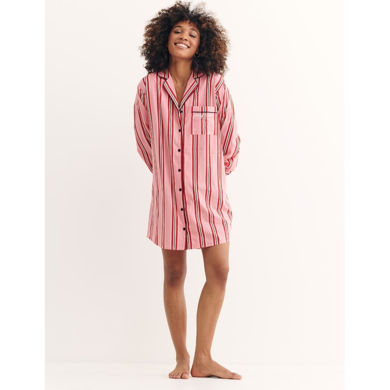 Proving that the stripe is always right, the Harry shirt dress is a must-have for your sleepwear collection. The dress boasts a relaxed fit and an above-the-knee length. Red, white and black stripes accent the pink dress, while contrast piping, a comfortable collar and an embroidered front pocket feature for an extra special touch.