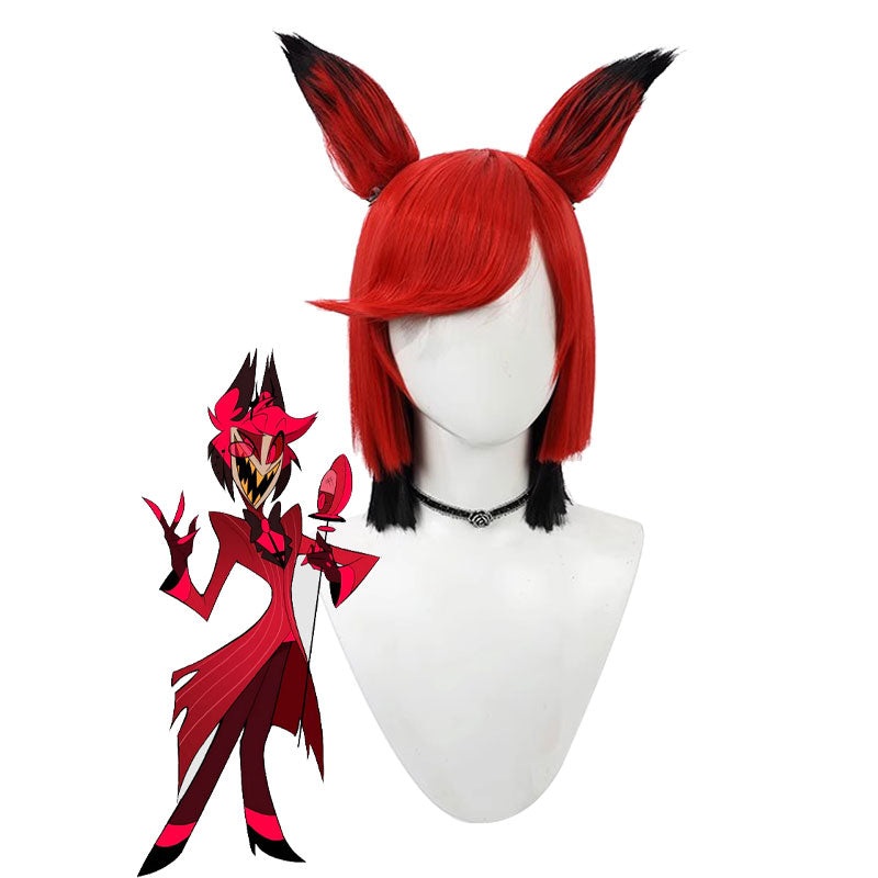 Anime Hazbin Hotel Alastor Cosplay Wigs With Ear PropsAnime: Hazbin HotelCharacter: AlastorLength : 30cm/11.8inch Color : RedPackage:1pc wig +1pc free wig capMaterial: Synthetic High Temp FiberCap Size:Average, suit for head circumference 55cm-65cmFeatures