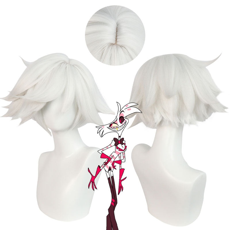 Anime Hazbin Hotel Angel Dust White Cosplay WigsAnime: Hazbin HotelCharacter: Anthony / Angel DustLength : 30cm/11.8inchColor : WhitePackage:1pc wig +1pc free wig capMaterial: Synthetic High Temp FiberCap Size:Average, suit for head circumference 55cm-65cm