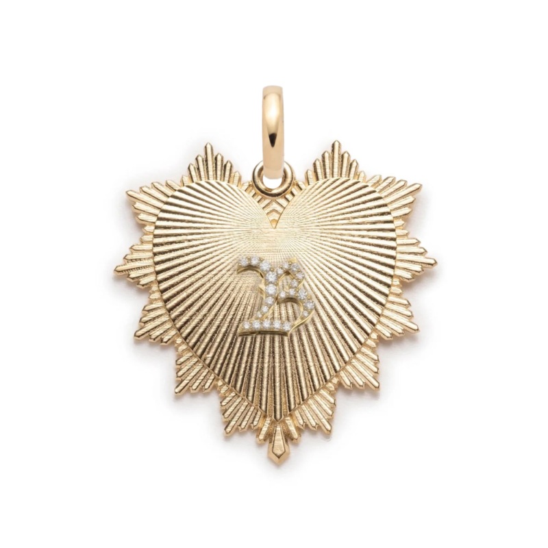 Crafted in 18-karat Yellow Gold, an Old English initial punctuates the center of our Oversized Heart Love Token. The oversized love token celebrates the seven classic types of love as defined thousands of years ago: