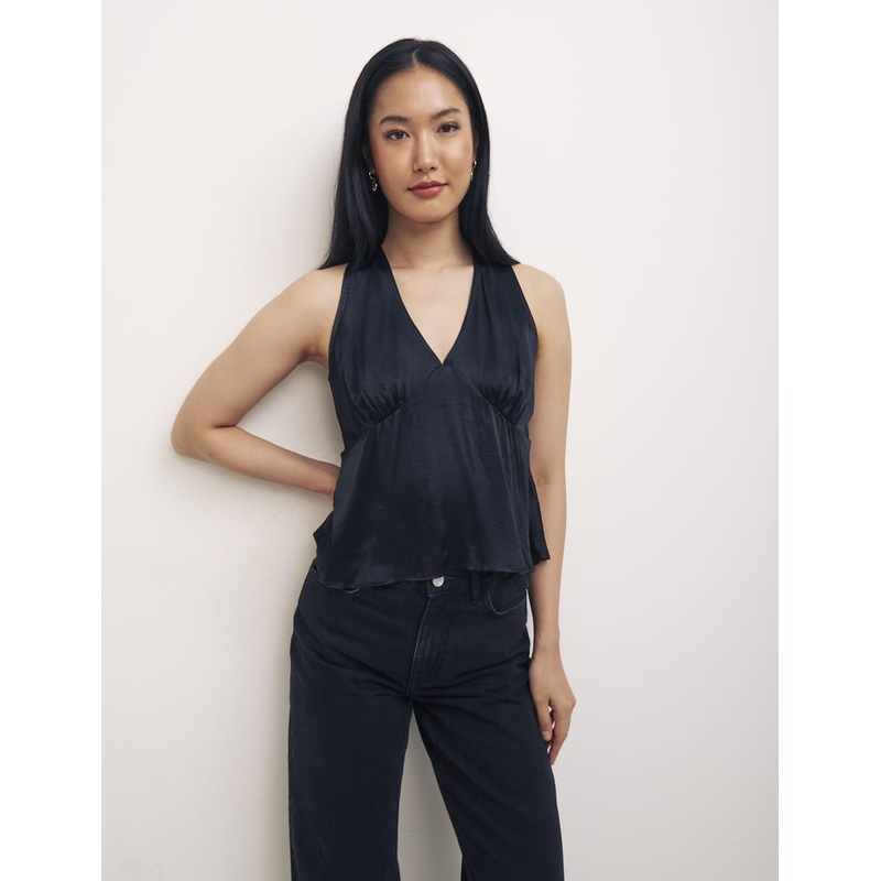Modelled from our ever-popular Helena dress, the Helena cami is set to become a fan-favourite, too. The black top boasts a dropped v-neckline, a subtle flared hem and adjustable ties at the back - just like the dress. Wear with smart trousers or denim, dep