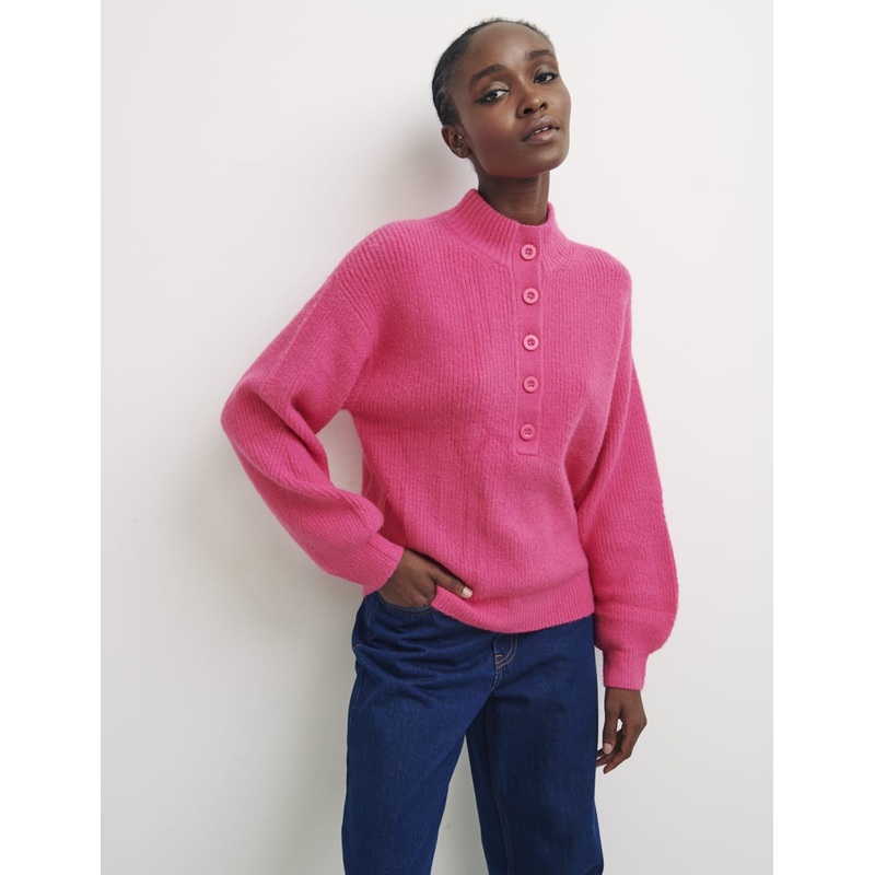 High Neck Half Placket Button Jumper