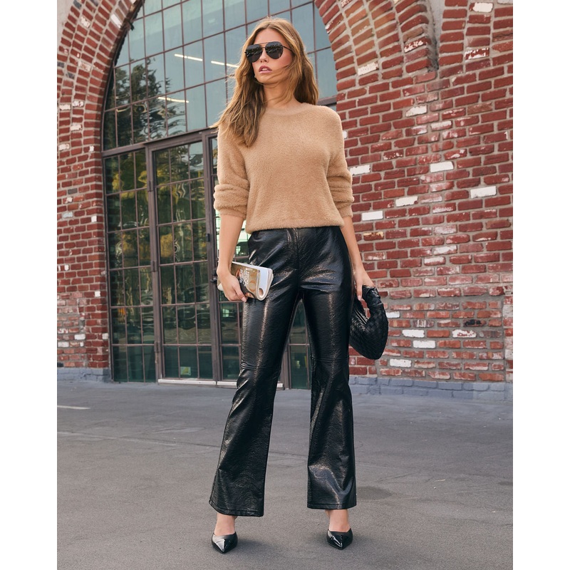 Standing out wont be an issue in the Hilarie High Waisted Leather Pants, designed for the trendsetters who love to create their own spotlight. Crafted from sleek creased patent leather fabric, these pants bring high-shine sophistication with a touch of edge. Whether you’re dressing them up with heels for a night out or pairing them with a chunky sweater for a chic daytime look, these leather pants are your go-to for turning heads and setting trends.
