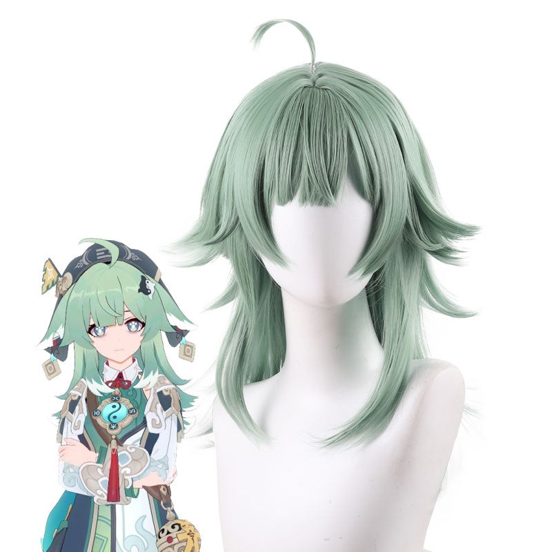 Game Honkai: Star Rail HuoHuo Cosplay WigsSource:Honkai: Star RailCharacter: HuoHuoColor: MediumAquamarineLength: 50cm/19.7inchFeatures: Thiscosplay wigis based on the character HuoHuofrom Honkai: Star Rail. This fashion wig can be used incosplayconvention