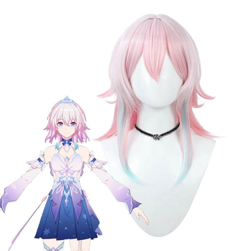 Features: Thiscosplay wigis based on the characterMarch 7thfrom Honkai: Star Rail. This fashion wig can be used incosplayconventions andHalloweenparties.