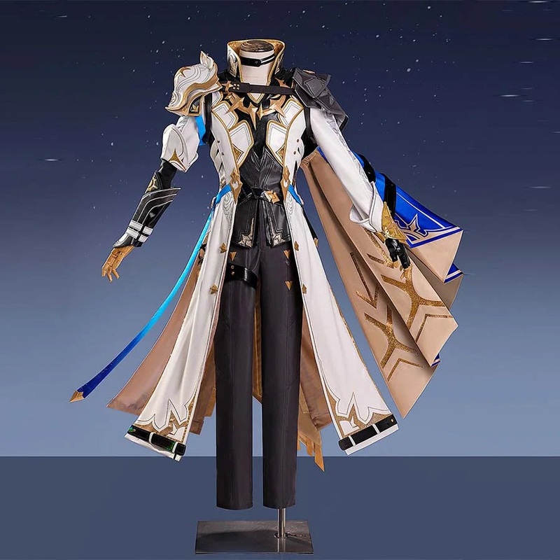 Includes: Neckpiece, gloves + wristguards, jacket, tattoo patch, lining + chest props*2, pants, sleeves + gauntlets, cloak + shoulder armor*2 + back belt*2.