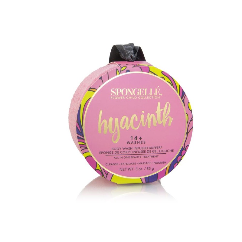 Spongells Flower Child Collection brings peace and harmony to your bathing experience. A celebration of love, summer, and the language of flowers in our signature Hyacinth scent. These Body Wash Infused Buffers will cleanse, exfoliate, massage and nourish.