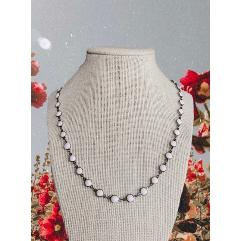 handmade white and gunmetal long necklace size guide: 17 + 2 extender chain*perfect for layering !!