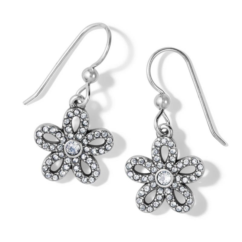 With a view like one sees while peering through a kaleidoscope, these earrings with daisy blooms accented by handset fine crystals add a light feminine touch to whatever you wear.