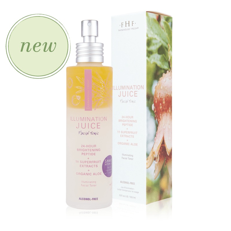 Shake before use to blend the mega-vitamin formula. Delivered with pristine organic aloe juice and a touch of beta carotene, Illumination Juice Facial Tonic delivers a trove of phytonutrients, vitamins and essential fatty acids to nourish your glow all day long. Even more spritz throughout the day, and this tonic provides instant refreshment.