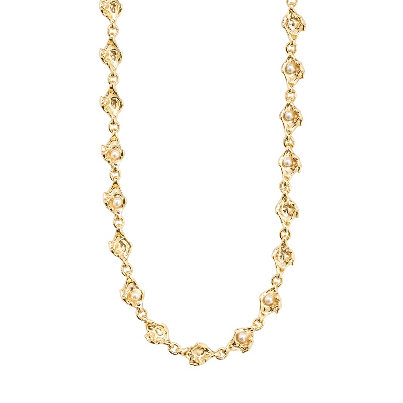 Unleash your inner glow with the INAYA necklace from - a gold-plated piece created with care and attention to detail. Small organically formed links and white glass beads evoke the many wonders of the sea, such as oysters, coral and seashells. A personal a