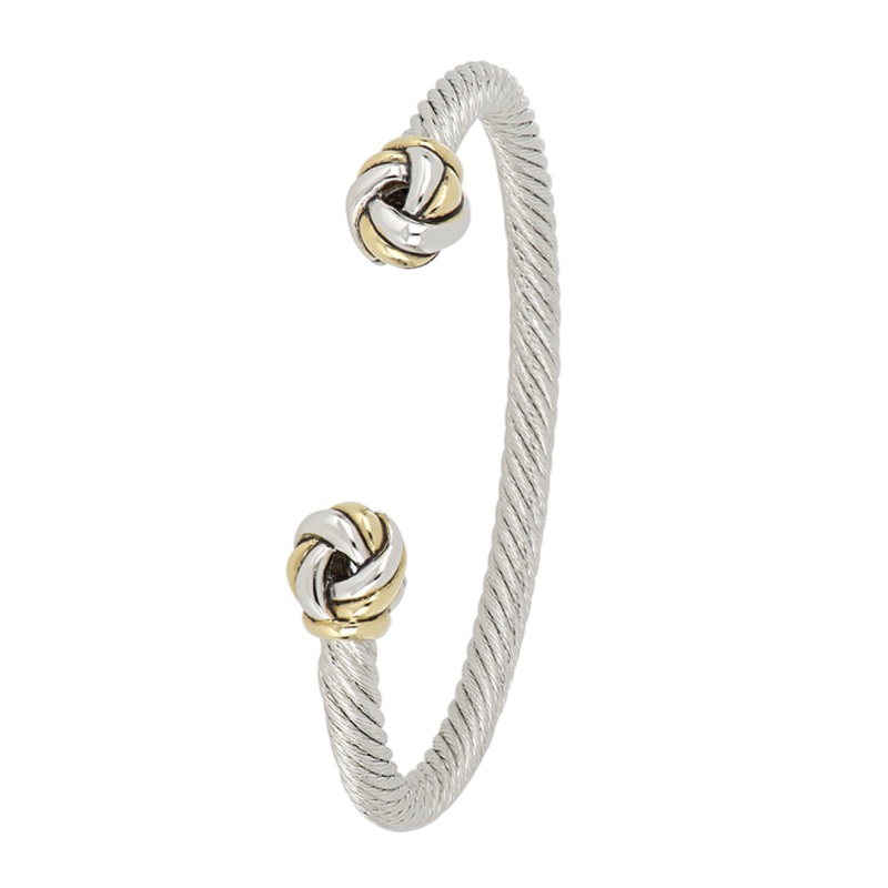Infinity Knot Two Tone Ends Wire Cuff Bracelet