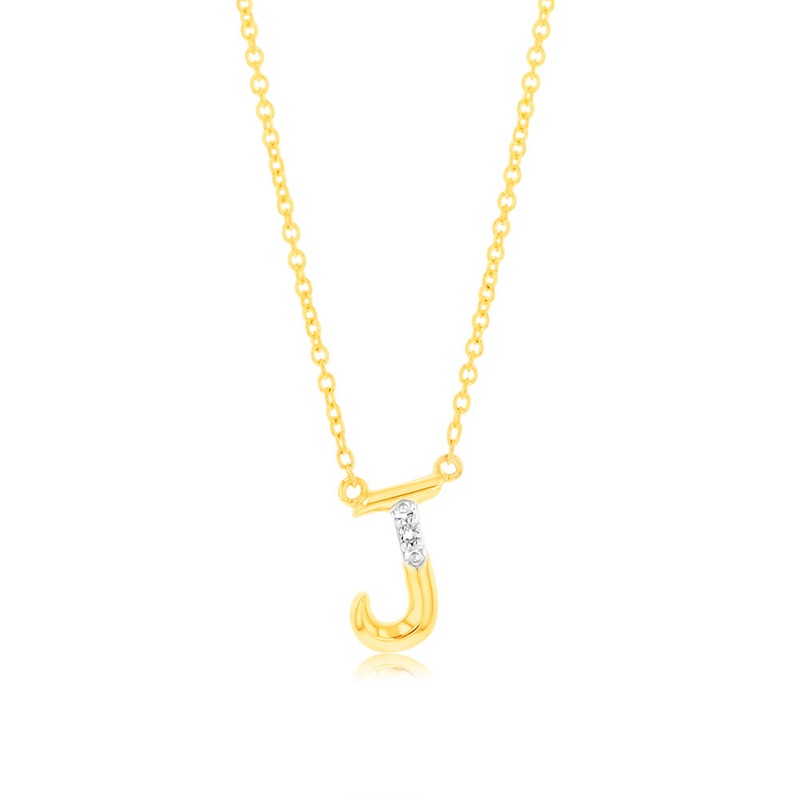 Initial J Diamond Pendant in 9ct Yellow Gold