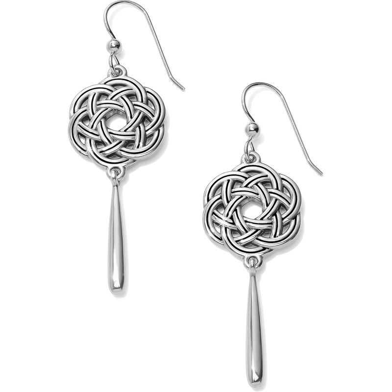 Symbolizing endless love and friendship, our Interlok knot is transformed into medallions that are almost floral, with elongated teardrops lending a bit of swing.Style: #JA5310Color: SilverType: French WireWidth: 5/8"Drop: 1 3/4"Finish: Silver plated