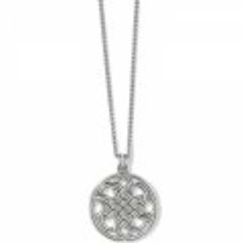 This interwoven design is seamlessly woven like a macram pattern to create this intricate medallion pendant necklace another interpretation of the ancient art of the Celtic knot.