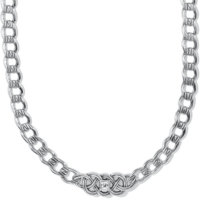 A touch of sparkle decorates the silver interlaced Celtic weave design accented with square crystals giving it more versatility to dress up, layer or mix with other silver pieces for an eclectic modern look.