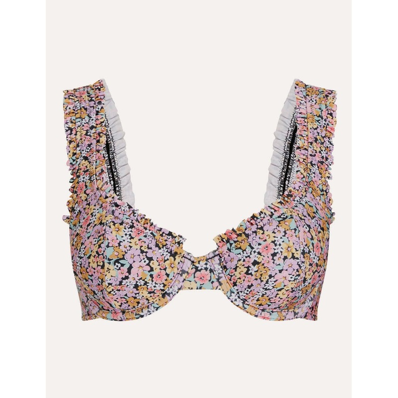 An ode to summer with a vibrant fuchsia palette, our Jemima bikini top is destined for warmer climates. Shaped by sculpted, underwired cups with ruffles all over. Pair it with the matching bottoms, but dont keep it restricted to the pool.