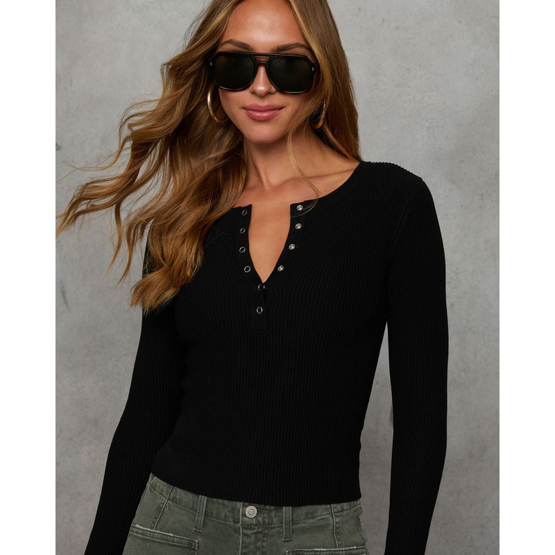 A basic essential that is anything BUT basic, the Jenza Ribbed Henley Top is your new secret weapon. Made from a midweight ribbed jersey fabric, and a partial front snap button closure, this piece adds a modern twist to a classic silhouette. Whether youre pairing it with jeans or a sleek skirt, the Jenza Henley is a last-minute style solution that works for every occasion.