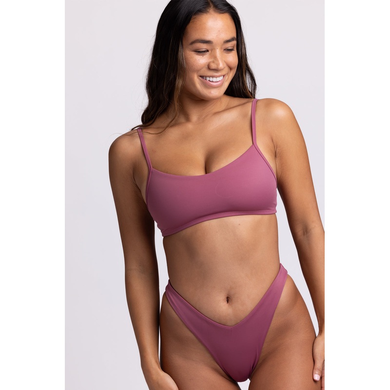 My personal favorite bottoms in the collection. The perfect everyday wear bikini bottoms- super flattering french cut to wear high on your hips with a v-shape. I love to pair these bottoms with the Mira or Avalon top”