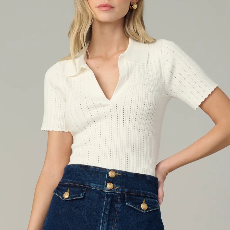 Joes Jess Pointelle Polo Shirt in Milk.