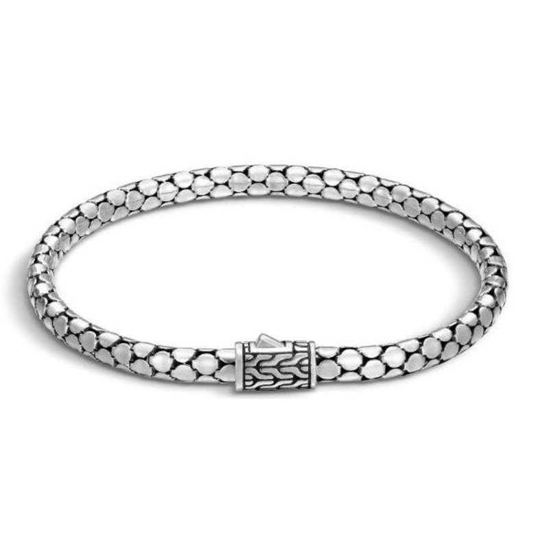 This John Hardy 4.5mm bracelet from the designer's Dot collection is subtly stylish. Crafted in sterling silver, the piece features high-polish dots against a blackened surface, creating a captivating contrast. Size M