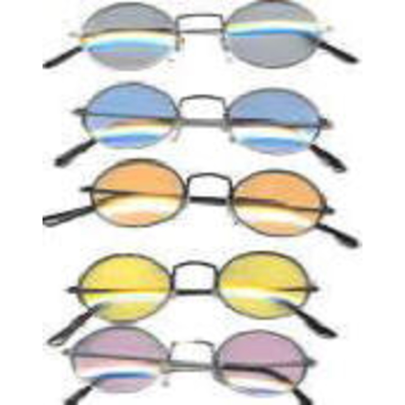 circa 1969Color: Round Gold Frame, Round Silver Frame w/Pastel color lenses.Blue Lens, Yellow Lens, Pink Lens