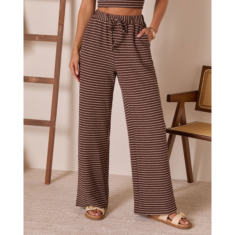 The Josefina Striped Drawstring Pants are here to bring easygoing elegance to your off-duty days. Made from soft, lightweight knit with a breezy striped design, these pants are all about relaxed vibes with a refined touch. The elastic waistband with a fron
