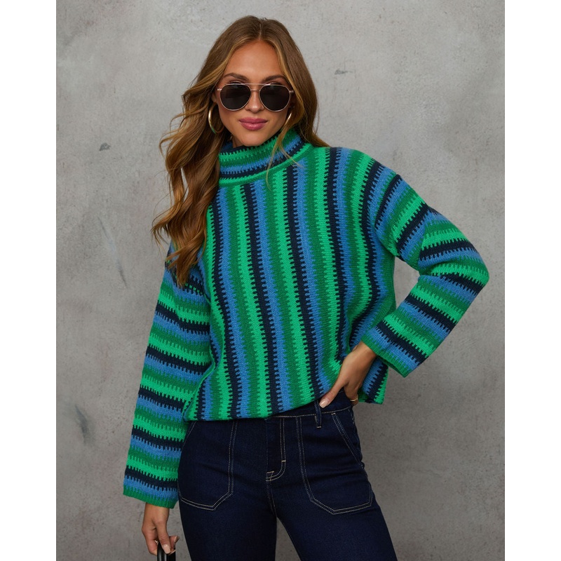 Joyful One Striped Knit Turtleneck Pullover Sweater