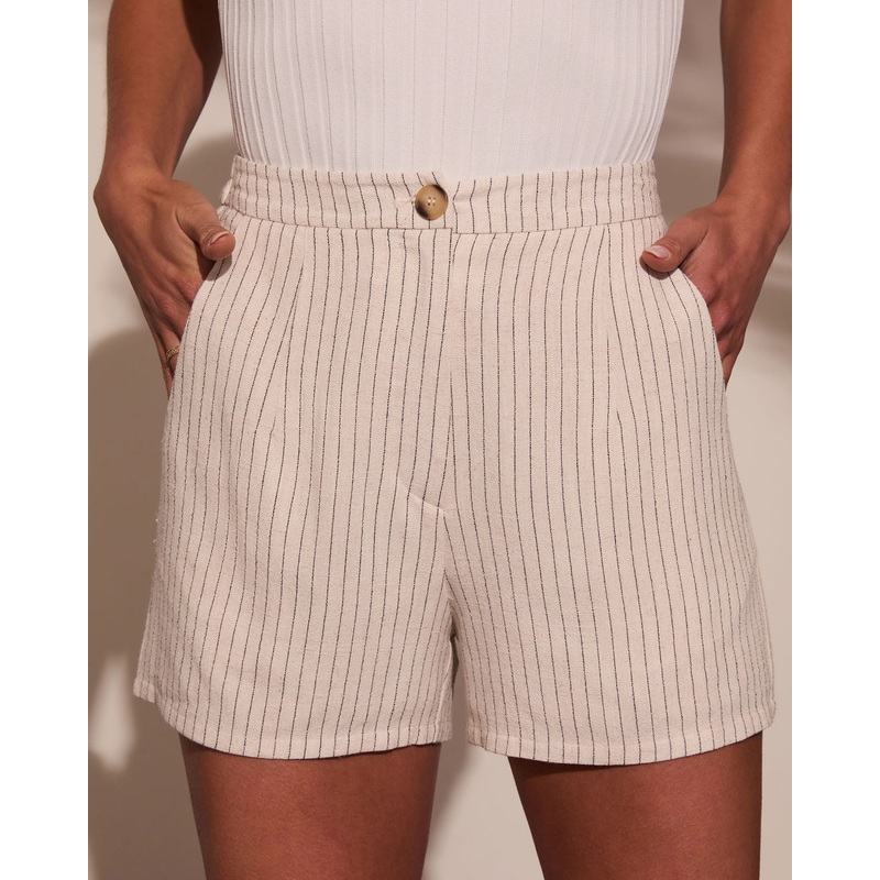 Tailored, timeless, and effortlessly cool, the Juliet Days Striped High Rise Shorts are your warm-weather wardrobe upgrade. Made from breathable linen jersey with a classic pinstripe design, these high-rise shorts blend polish with ease. Whether you're sty