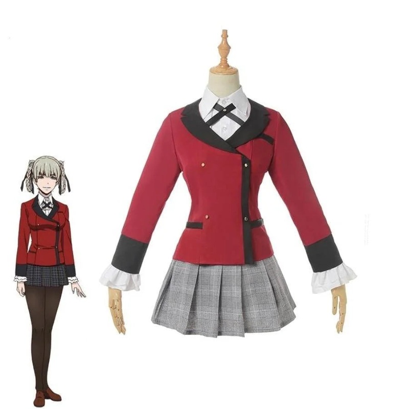 DescriptionSize ChartNote: Pls check item size chart and delivery date before ordering.Includes:Jacket Skirt Shirt Tie Materials:Polyester.Kakegurui Compulsive Gambler/ Kirari Momobami/ Cosplay Costumes/ JK School Uniform/ Kirari Outfit/ Kirari Uniform/ Ki