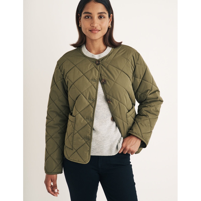 Kodie is our new quilty pleasure. This khaki green jacket features a relaxed fit and button front thats perfect for throw-on-and-go days. The best part? It has pockets! Style yours with jeans and boots.Button frontPocketsDesigned for a relaxed fitSize tip: