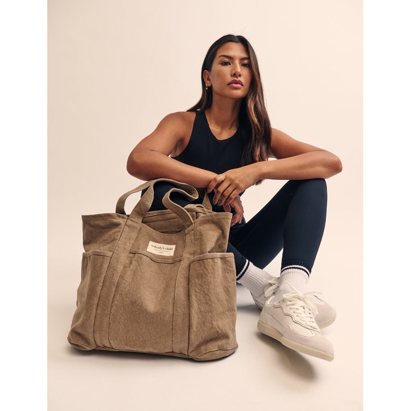That leave-by-the-door bag that does it all. From filling it for the office to the grab-and-go before the gym this soon-to-be life staple is made in a soft shade of khaki. Style yours with activewear now and gold jewellery later.