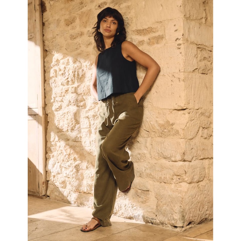 And relax. These khaki wide leg trousers come stitched with oversized pockets and a soft drawstring waist in a breezy fit. Were wearing ours with the matching top.Drawstring waistPocketsWide leg cut that skims the body