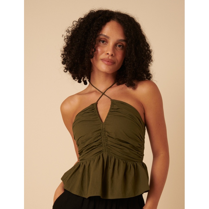 Easy and effortless. Coming in deep green with halter straps that can be styled your way, we love the ruched bodice and peplum hem that adds the perfect finish.Halter neckPeplum shapeShirred back for comfortSize tip: we recommend sizing down