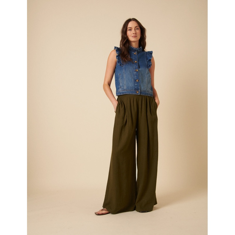 A new take on tailoring. Designed to flatter, our khaki pleated pair nips in at the waist and falls effortlessly to a relaxed wide leg. Wear yours with everything you already own.