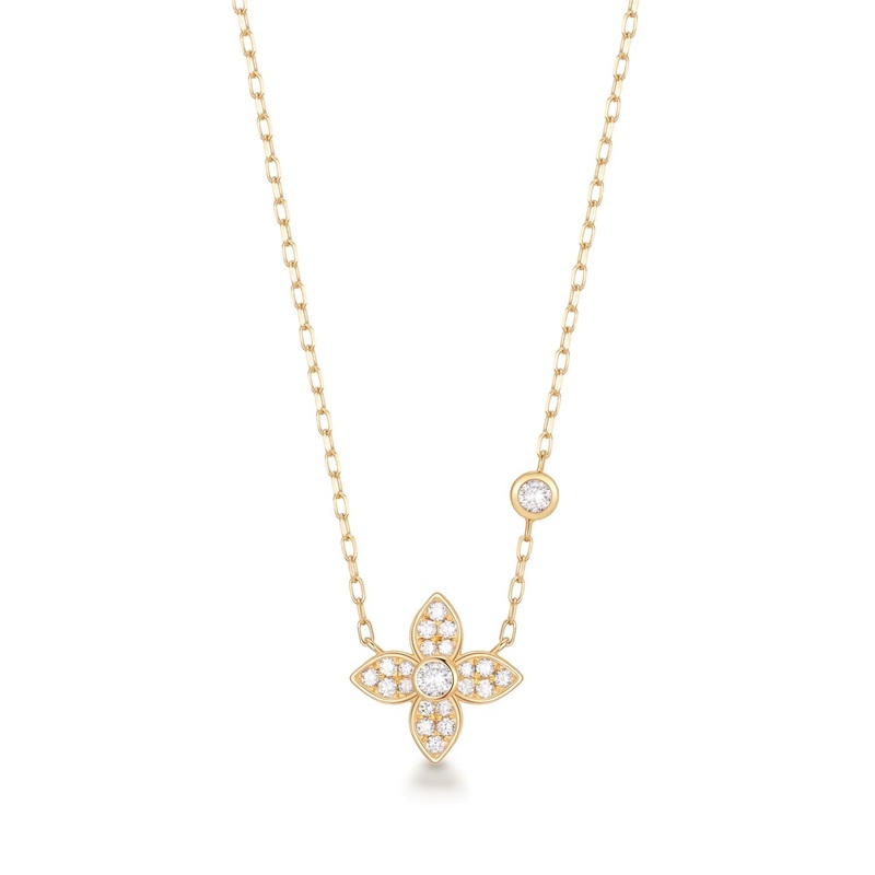 Bring on the good luck with a fun clover necklace with lab grown diamonds. Perfect for a bit of Irish blarney.Product Details:Material: 14K Solid Gold16" + 2" ext.Charm Size: 11*11 mmLab-Grown Diamond Size: 1 mm,1.2 mm,2.1 mm,2.2 mmTotal Weight: 1.604gTota