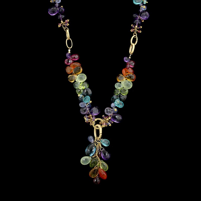 Laura Gibson 18K Yellow Gold Estate Gemstone Convertible NecklaceThe necklace is designed with various shaped colored gemstone beadsIncluding amethyst, topaz, citrine, peridot, garnet, tourmaline and others, with six different components