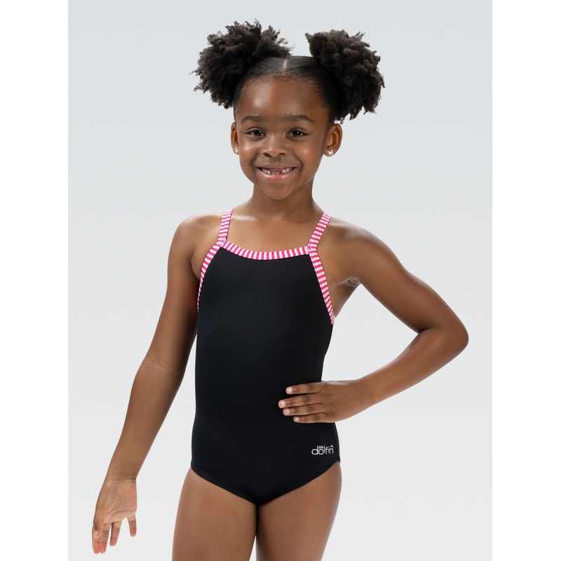 The Little Dolfin Girls' Black One Piece is a timeless staple that combines style and versatility for your little swimmer. Made from high-quality, chlorine-resistant fabric, this sleek suit offers excellent shape retention and comfort, ensuring she can swi