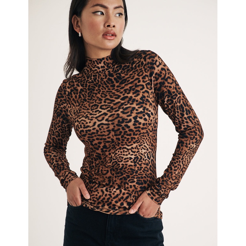 Layer up. This goes-with-everything leopard print roll neck is needed in every wardrobe. Its designed for a close cut. Style yours with everything you already own. Roll neck Long sleeves Soft stretch jersey fabric Designed for a close cut
