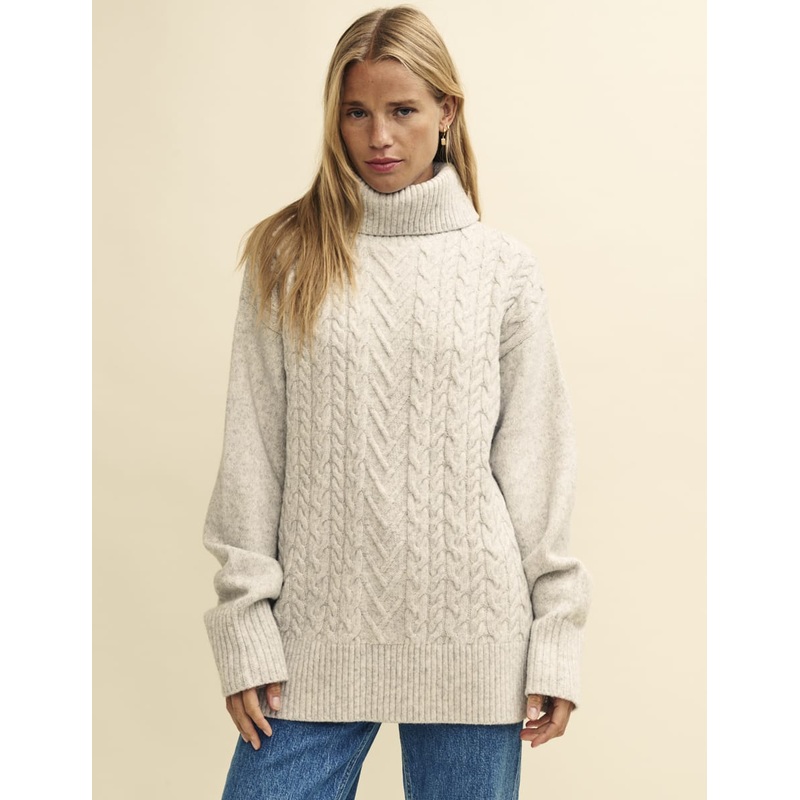 Light Grey Cable Knit Roll Neck Oversized Jumper