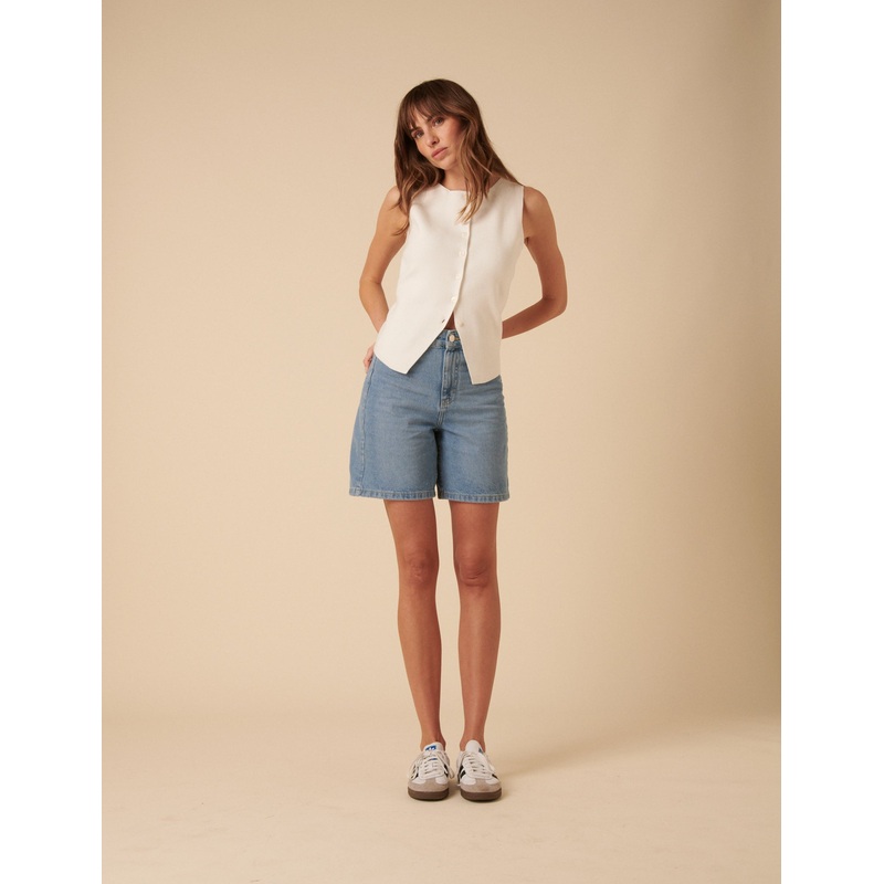 Denim shorts just got better. In light wash blue, this style has been designed in a super relaxed cut that skims the body and is guaranteed to make your legs look great. We love the classic five-pocket style with belt loops, a zip fly and a silver-toned NC