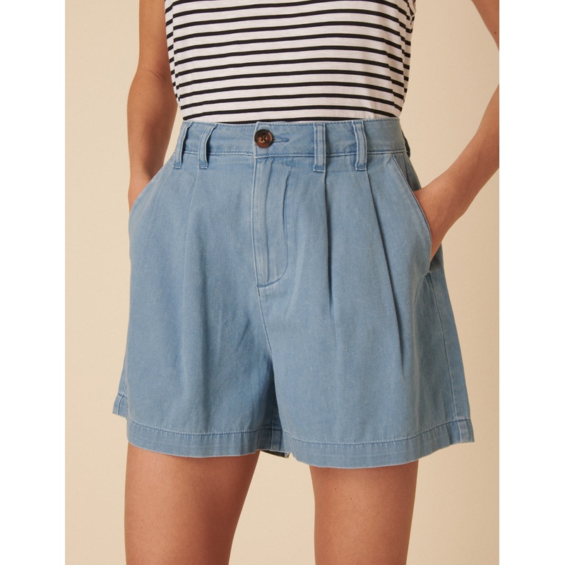 Weve taken our much-loved Ava trousers and transformed them into shorts. Coming in a light-wash denim, she fits high on the waist with a double pleat front and a relaxed cut designed to flatter. Style yours with everything you already own.
