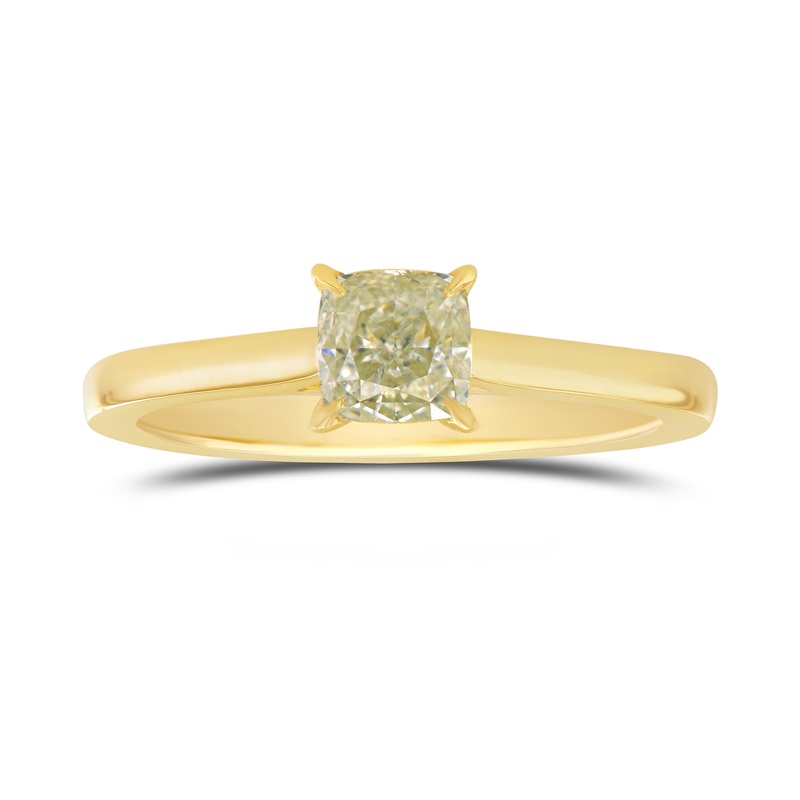 Light Yellow-Green Cushion Diamond Solitaire Ring