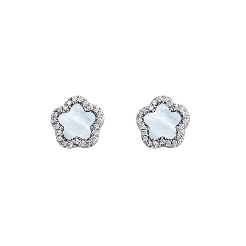 Lilia Pave Studin white rhodium with paveCZ and mother of pearl flowers are sure to dazzle this holiday season!