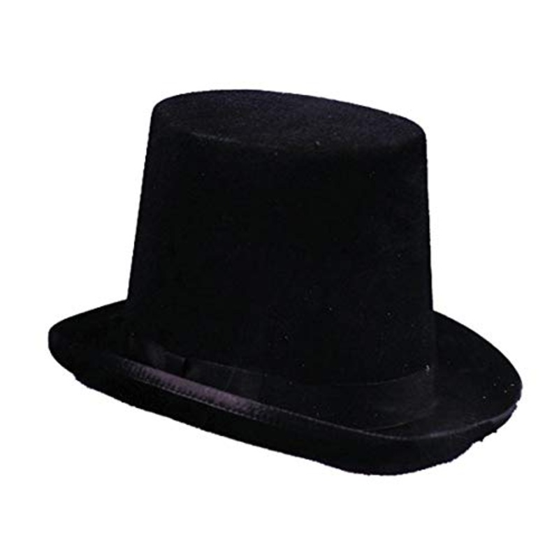 Top quality black wool felt, very realisticstovepipe hat w/cloth band. 2" wide brim. 6.5" heightColor: Black Only (shown)Size: S, M, L, XLMGA12