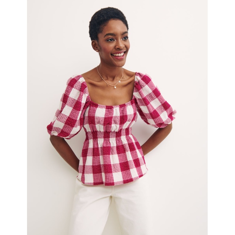 Gingham continues to have a moment and this Lisa top is in on the trend. It takes on a relaxed frame with puff sleeves, a square neckline and a stretchy elasticated waist that moves with your body. Soft seersucker fabric makes it a dream to wear no matter the season. To finish, pair with your favourite denim and trainers.