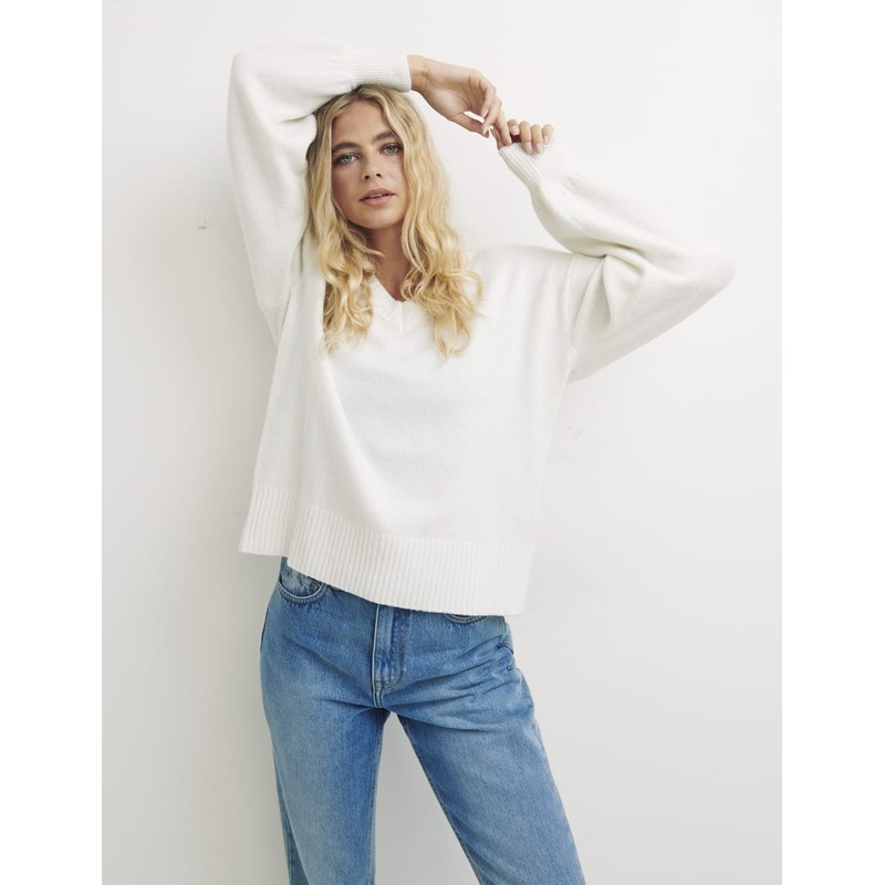 You can never have enough knitwear during the colder months and this cream slouchy knit should be your next addition. Made from a super-soft fabric blend, the jumper features a ribbed v-neckline, ribbed cuffs and a relaxed fit. Wear yours with denim and tr