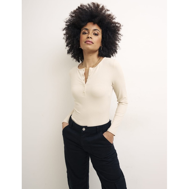 "Our cream Carson body is all about fit. Its cut close to accentuate your curves. The button-up placket keeps the look casual but theres nothing stopping you from dressing it up with layers of gold jewellery. Here weve styled it with cargos.Round neckRibbe
